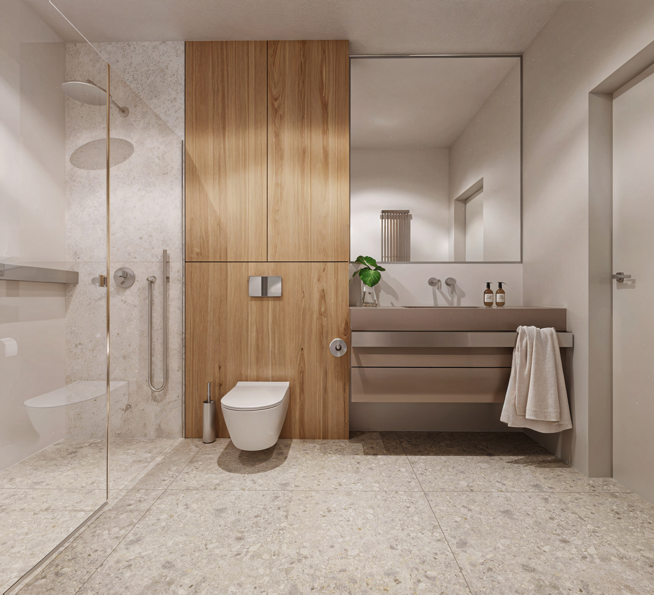 Każde pomieszczenie zostało starannie dopracowane pod względem ergonomii i detalu — od otwartej strefy dziennej z dużymi przeszkleniami, po komfortową sypialnię i funkcjonalne zaplecze użytkowe. Efektem jest nowoczesne, ale ciepłe wnętrze, w którym estetyka idzie w parze z praktycznością i wygodą codziennego życia.